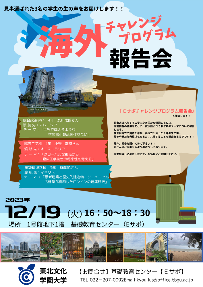 ~海外チャレンジプログラム報告会開催のお知らせ~