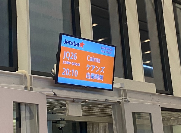 20時5分に日本を出発し、ケアンズ空港には現地時間の朝4時30分頃に到着する予定です。