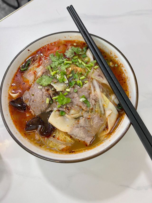 その後、荷物を置いて近くのレストランへ行き、蘭州ラーメンを食べました。