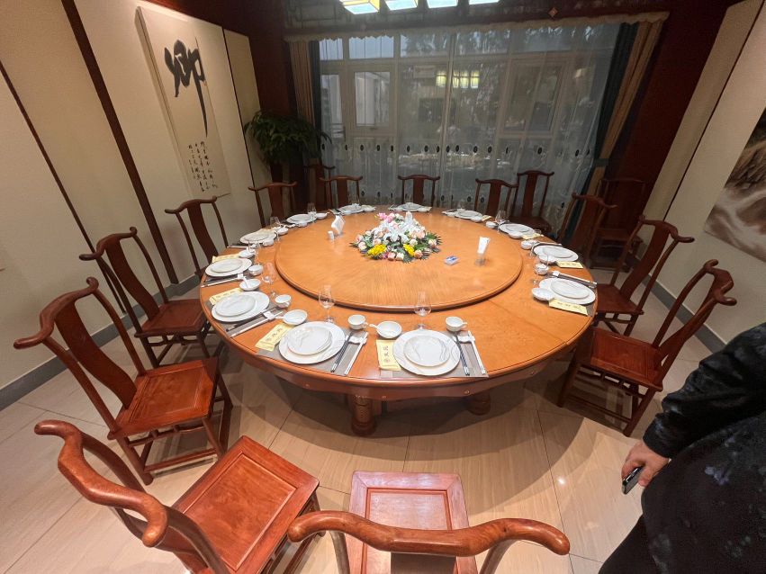 17時にバスで邯鄲キャンパスへ移動し、18時に交流ディナーの会場に時間通り到着しました。