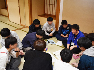4月5日の午後から、学外での一泊研修。この学外研修の運営は「学生リーダー会」が行います。