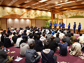 このほか、研修では、先輩方と語るコーナーや学園歌の練習などもありました。