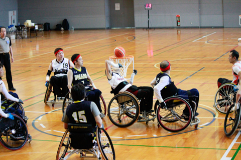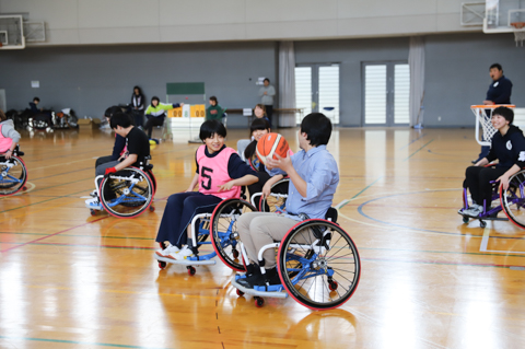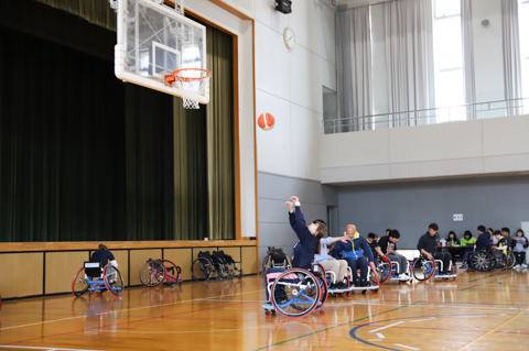 車いすツインバスケットボールは、脊髄を損傷した障がい者の中でも、“頸髄”を損傷し四肢や体幹を麻痺した重度の障がい者が行うバスケットボールで、通常のリングにシュートが届かなくても、低いリングにシュートを打つことができる、つまり2つ(ツイン)のリングがある車いすバスケットボールです。学生は、通常の学習では学ぶことのできない貴重な経験をさせていただくことができました。