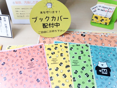 いつものブックカバーの他、「ブンくま」とのコラボレーションブックカバー、栞を無料配布しています。図書館にもぜひ足を運んでください!!