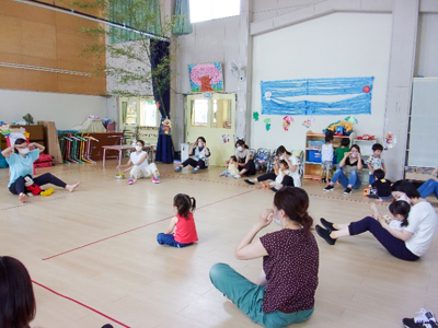 第2回子育て支援教室は健康運動指導士の早坂聡子先生をお招きして親子ビクスを行いました。