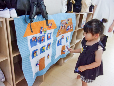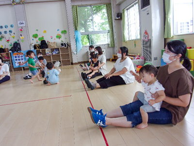 「子どもは1日に180分の運動が必要です。今日はその三分の一を親子で楽しく消費しましょう!」ということで、リズム遊びやふれあい遊び、アンパンマンのお引っ越し遊びを楽しみました。指先を使った遊びから全身運動まで、様々なヒントが盛り沢山でした。
