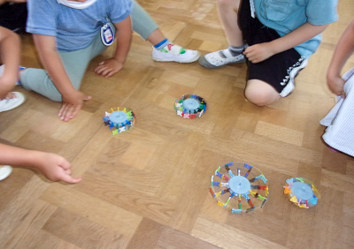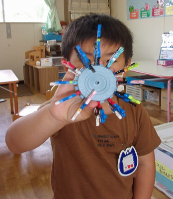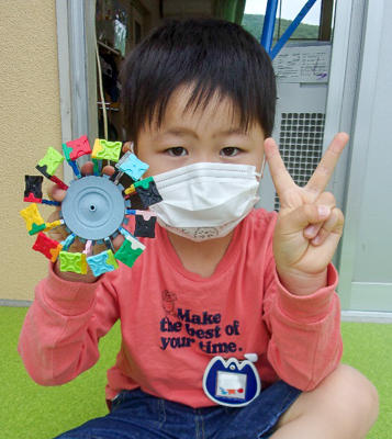 男の子はベイブレードのようにコマを作って回して、競い合う遊びも楽しんでいます