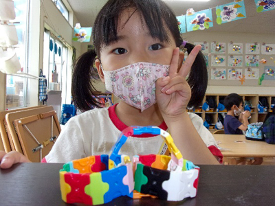その中でも、LAQ(ラキュー)に興味を持ち、集中し、作品作りを楽しんでいます。