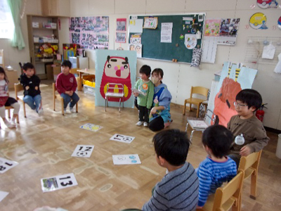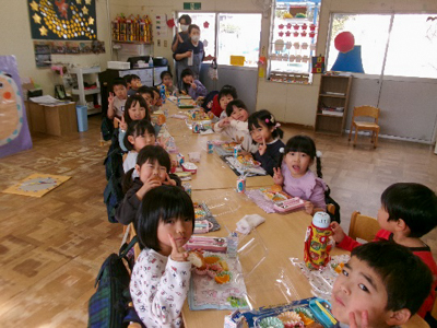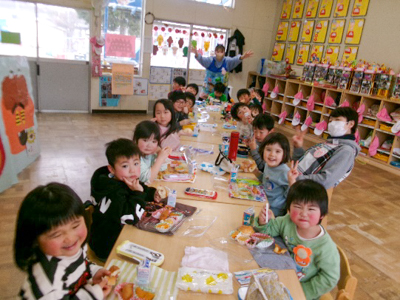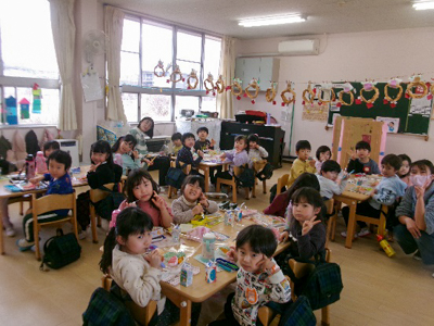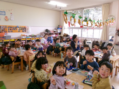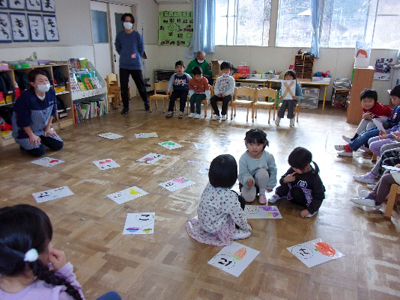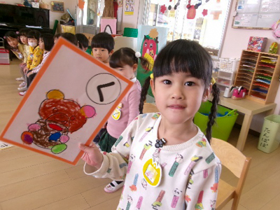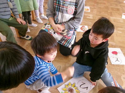 1月23日(火)にわくわくデーがありました。大型福笑いとかるたを楽しみ、異年齢交流を深めました。年少組のお世話をする年中組年長組の頼もしい姿や、お兄さんお姉さんを頼りながらも一緒に楽しむ年少組の姿がありました。