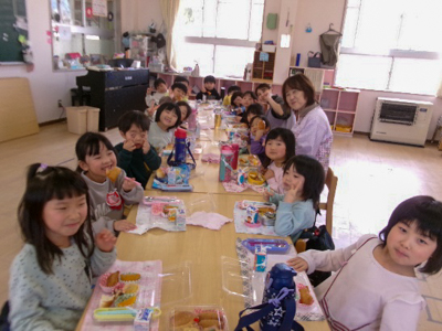 わくわくデーの最後は異年齢で楽しむ昼食タイムです?仲良しのお友だちや違う学年のお友だちを誘い合っていました。給食の子どもたちはみんな大好きなパン給食で大喜び?最後までわくわくデーを満喫できました。