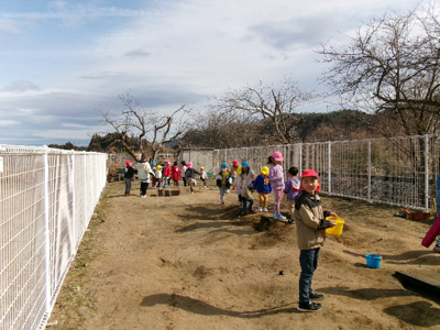 年長の桜組が中心となり、友愛畑にアスレチックができました。