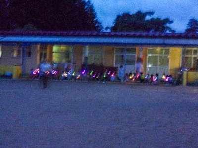 お化け屋敷でゲットしたキラキラペンダントを持って夜の幼稚園を楽しみました。