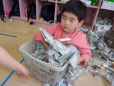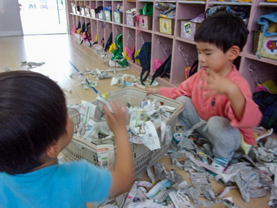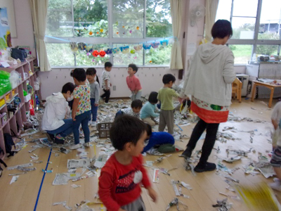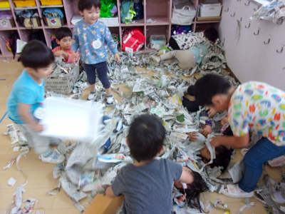 一生懸命小さく破る子と、引きちぎる子など様々でした。