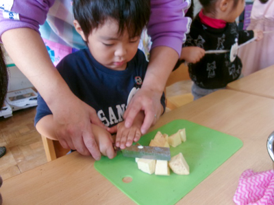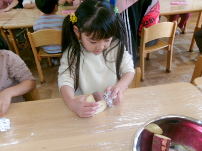 クッキング第三弾は月刊絵本で読んだ「さつまいももち」作りに挑戦!!
