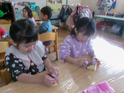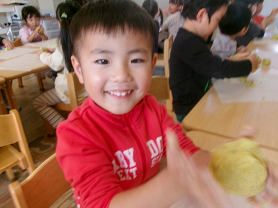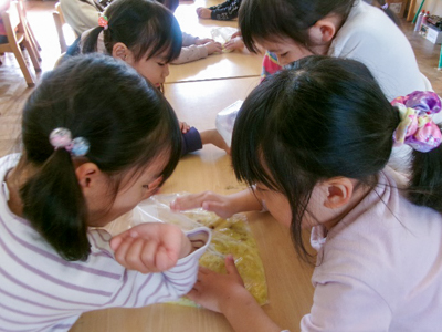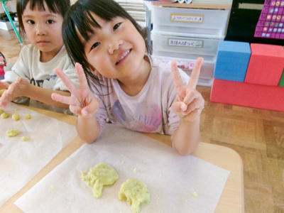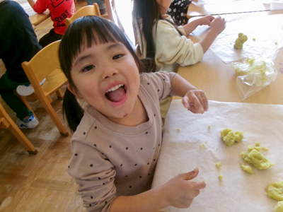 みんなは「美味しいきびだんごになーれ!」と言いながら、形作りを楽しみました?
