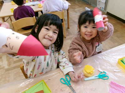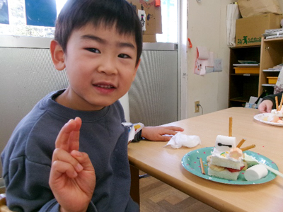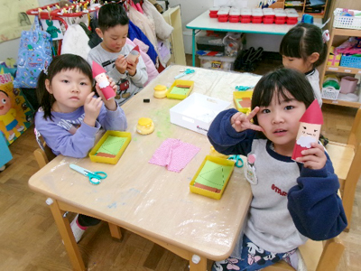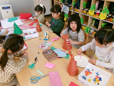 みんな作るのとっても上手!完成したら、被って友だちに自慢していました。