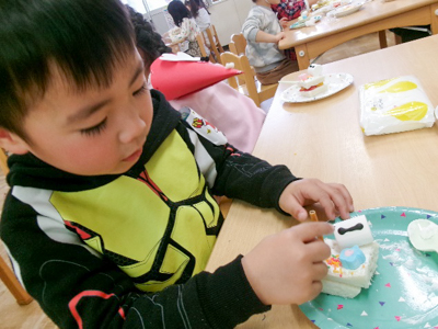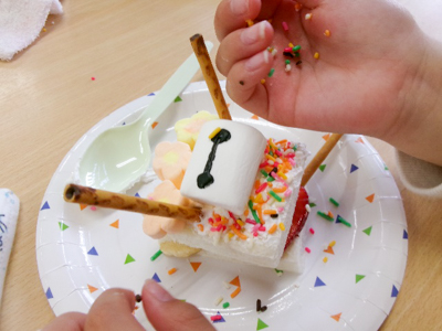 まずはケーキにトッピング!