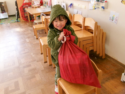次の日の終わりの会では、サンタさんがやってきて、プレゼントを貰ったり干支探しもして