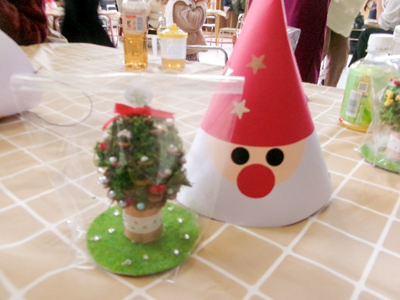 シールをペタペタ。可愛いサンタさんに変身して、クリスマス会の始まりです!