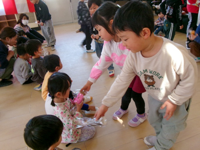 つぼみ組や年少さん、園長先生たちに招待状を渡したよ。