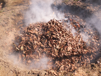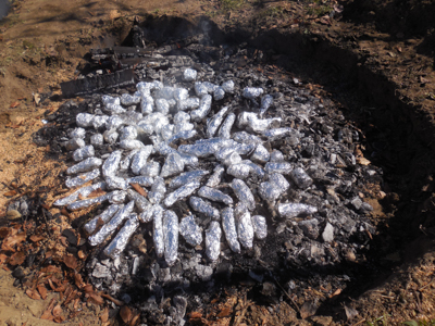 畑に穴を掘って薪を燃やし、運転手さんが火の番をしてくれました。