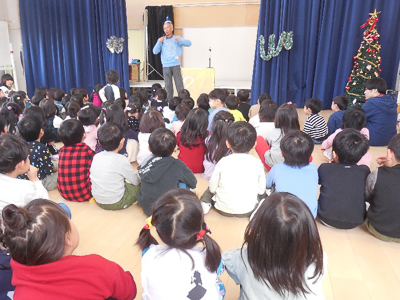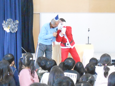 すると、鈴の音が聞こえてきて、ゆうあいサンタさんが登場。