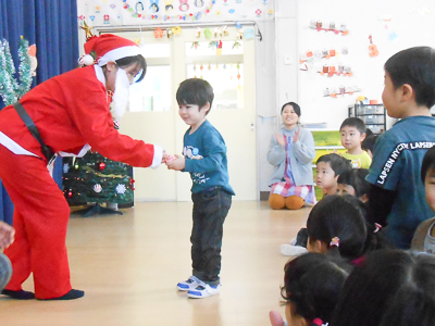 サンタさんからクラスの代表のお友だちがプレゼントをもらって会は終了です。