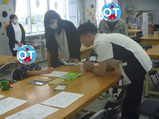 ★OTに関するクイズコーナー:問題は、授業で得た知識をもとに、1年生が考えました。小さいお子さんにはたくさんヒントをあげて、優しく対応。さすがの気配りです。