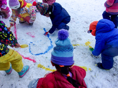 ままごとでアイスクリーム屋さんを始めると、味をつけたいからと絵の具で染め始める子もいました。