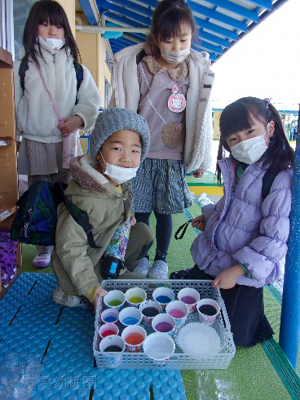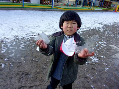 年長さんでは、氷の謎を科学的に探究する子もいました。